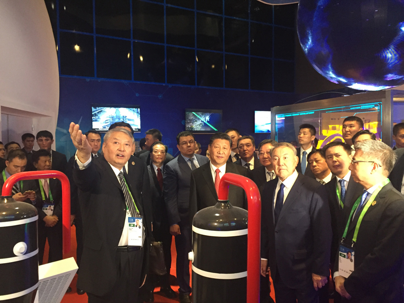 2017年6月8日,在哈薩克斯坦阿斯塔納世博會開幕前夕,中國國家主席習(xí)近平和哈薩克斯坦總統(tǒng)納扎爾巴耶夫?qū)κ啦袊^進(jìn)行巡館。在華龍一號模型前,習(xí)近平主席對納扎爾巴耶夫總統(tǒng)介紹說:華龍一號是中國完全自主知識產(chǎn)權(quán)的三代核電技術(shù)這是國家領(lǐng)導(dǎo)人在李克強(qiáng)總理肯定華龍一號首堆穹頂?shù)跹b后的又一次肯定。