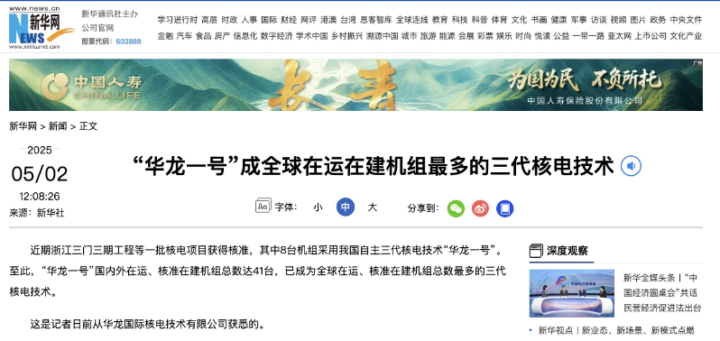 新華社聚焦 | “華龍一號”成全球在運在建機組最多的三代核電技術